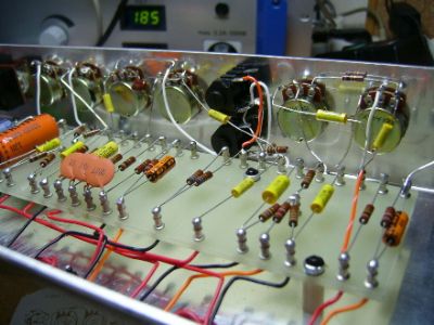 Signalwege so kurz wie möglich um den möglichst reinen Ton abzubilden. Komplett Point-to-Point mit allerfeinsten Parts verdrahtet. Einen Clip gibt es hier: