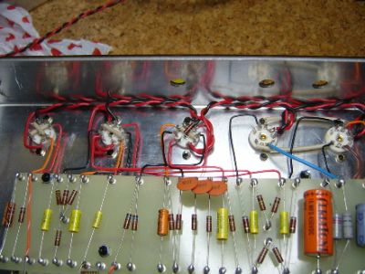 Die Heizspannungszuführung gut verdrillt und Beschaltung der Röhrensockel.