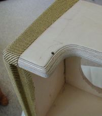 Zum Schluß wurde das Gehäuse 4 x mit Nitrolack klar gestrichen. Damit ist der Tweed Gloth besser geschützt, und durch die Vergilbung des Lackes bekommt das ganze eine schönere Farbe.