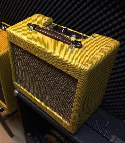 Cabinet Tweed mit 6-fach Schellack "aged" lackiert und abgestumpft. Chrunch-Ton vom Feinsten.... Soundcheck Vergleich mit orig. 53-er Deluxe 5C3 gibts hier!